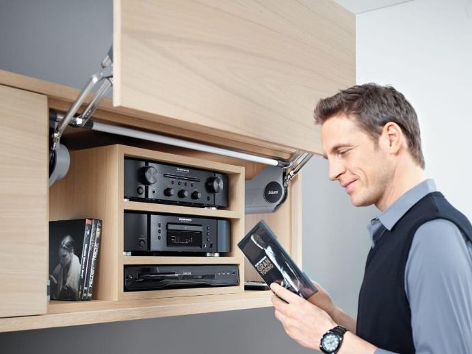 abierto solo requiere poco espacio hacia arriba. AVENTOS HK de BLUM sale por
