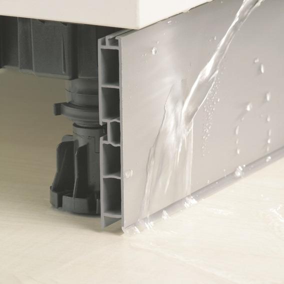 Zócalo plástico con recubrimiento de aluminio, garantiza limpieza fácil y sin problemas de humedad por derrames o el uso diario.