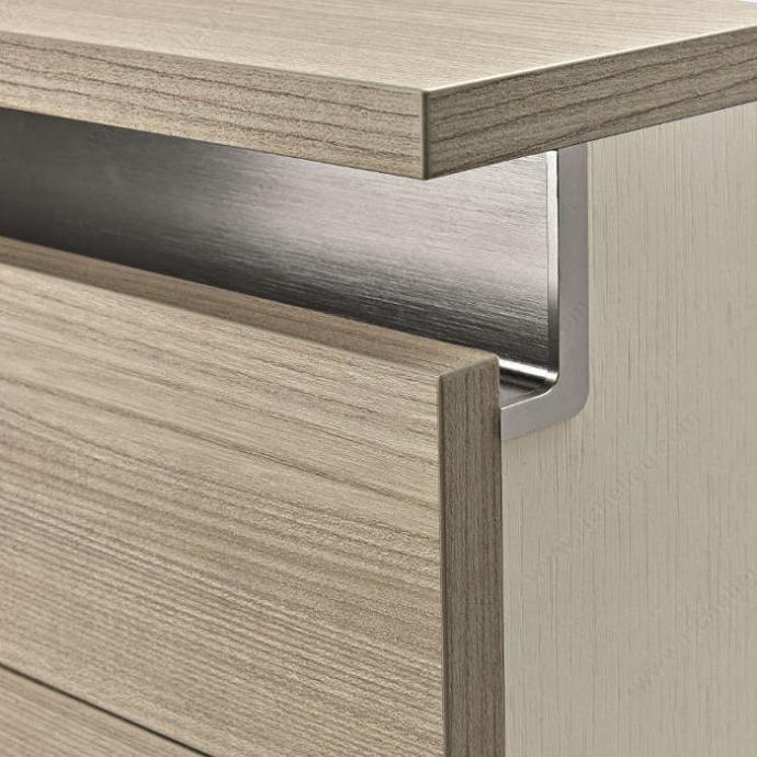 y para alacenas en aluminio, para muebles de cocina sin tirador. El perfil queda
